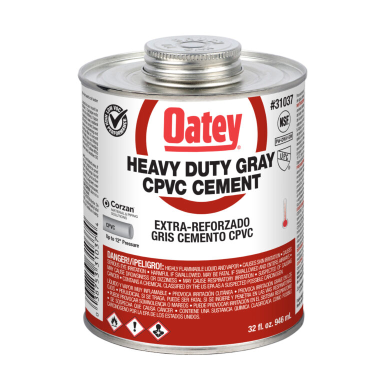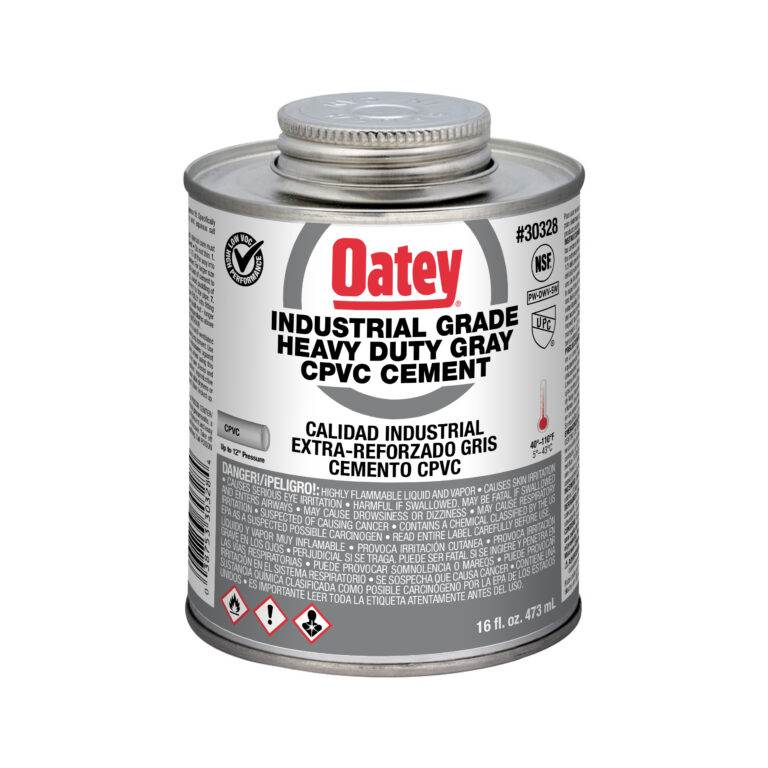 Oatey® CPVC Heavy Bodied Medium Set Gray Cement zalecany do komercyjnych systemów ciepłej i zimnej wody o temperaturze do 200°F / 93°C. Sformułowany do stosowania na wszystkich rodzajach i klasach rur i kształtek CPVC o średnicy do 12 cali z pasowaniem wciskowym. Produkty Oatey cieszą się zaufaniem profesjonalistów z branży hydraulicznej od ponad 100 lat.