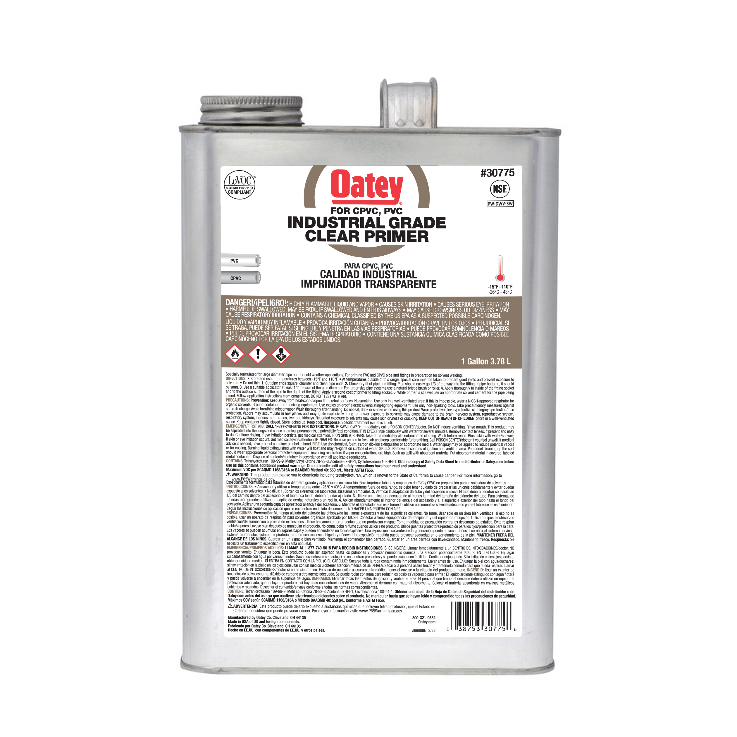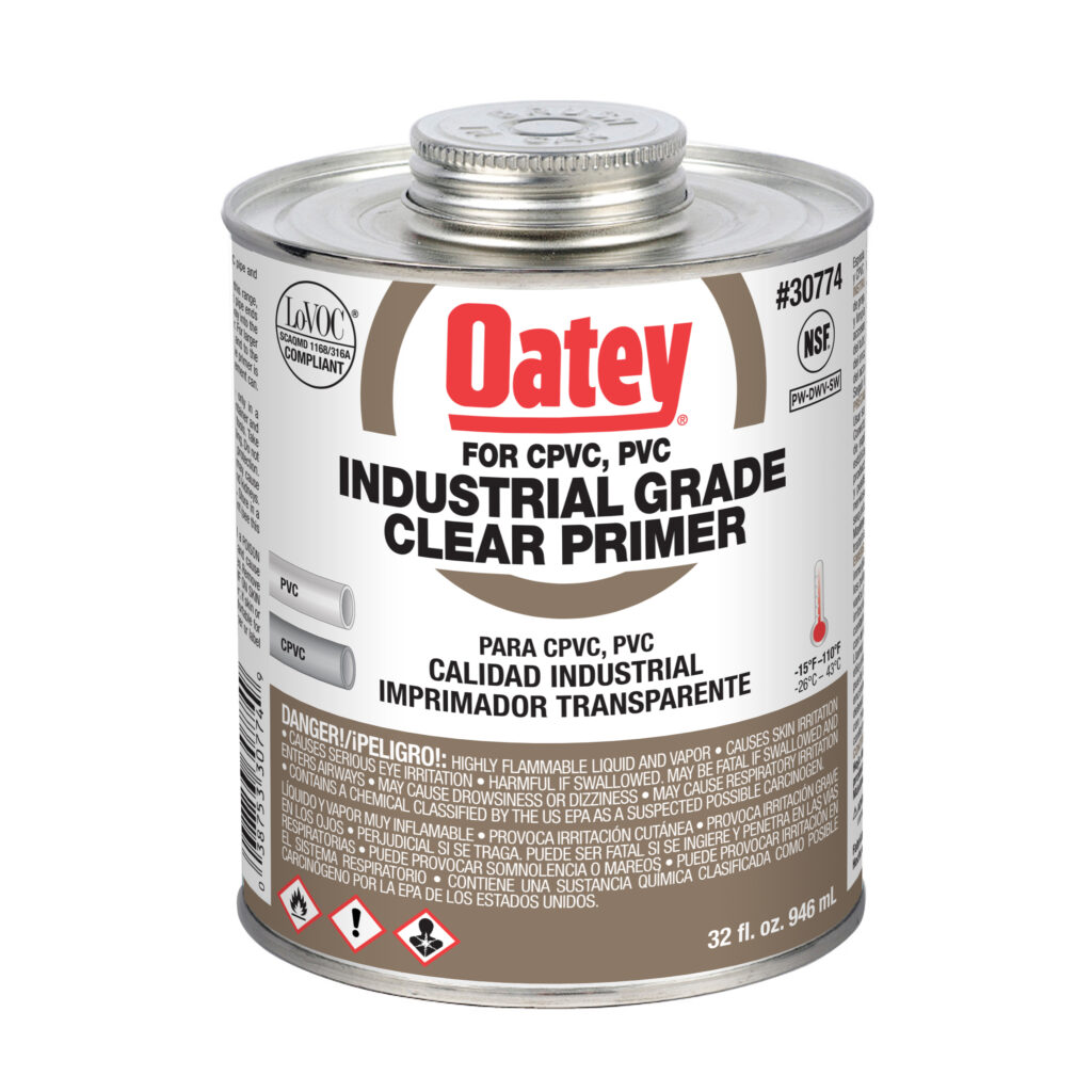 Oatey® Industrial Grade Clear Primer to dopuszczony przez NSF, agresywny podkład do stosowania w komercyjnych systemach rur termoplastycznych o dużych średnicach, w szczególności CPVC Sch. 40 / 80. Jest przeznaczony do stosowania na rurach i złączkach z PVC i CPVC w niskich temperaturach. Usuwa zanieczyszczenia, takie jak brud powierzchniowy, tłuszcz i brud, a także zmiękcza powierzchnię rury, umożliwiając szybkie i bezpieczne spawanie rozpuszczalnikiem. Jego przezroczyste wykończenie nie plami większości powierzchni i łatwo się nakłada za pomocą dołączonego dozownika. Produkty Oatey cieszą się zaufaniem profesjonalistów z branży hydraulicznej od ponad 100 lat.
