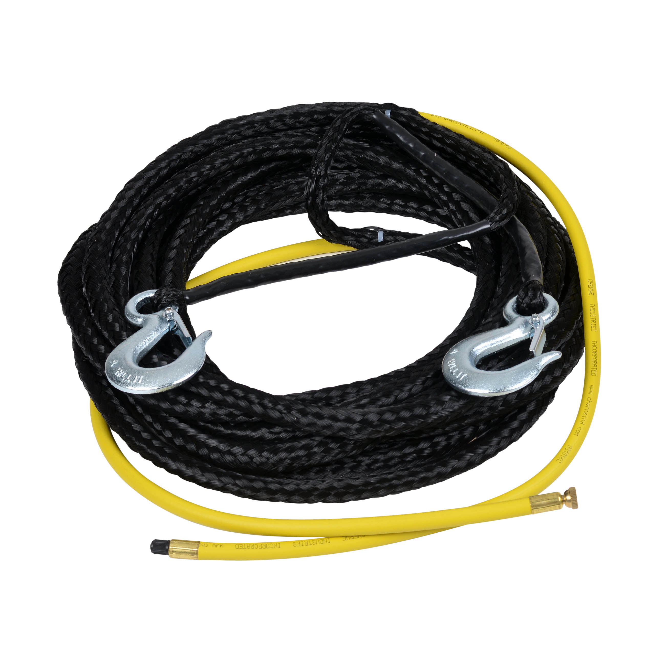 Cherne 3/16 in. ID Poly Lift Line łączy w sobie wąż do napełniania i linię do podnoszenia, tworząc doskonały sposób napełniania, podnoszenia na miejscu lub wyjmowania korków bez uszkadzania węża do napełniania lub połączeń. Cherne Industries jest światowym liderem w produkcji korków rurowych i sprzętu testującego.
