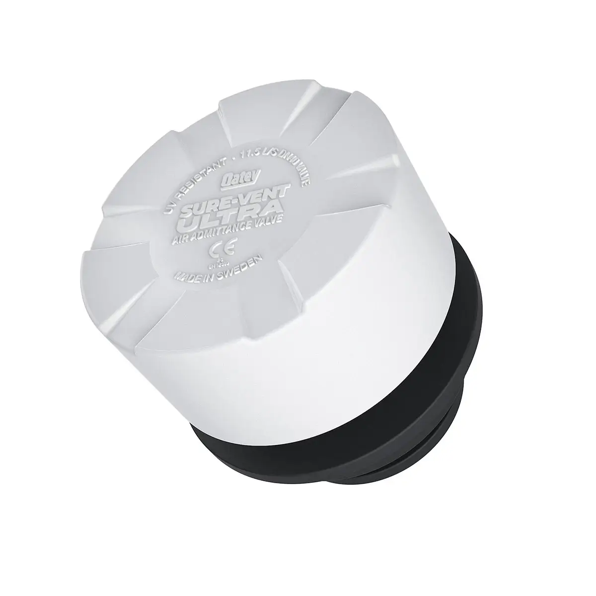 Oatey Sure-Vent Ultra zapewnia metodę wpuszczania powietrza do systemu kanalizacji sanitarnej bez użycia odpowietrznika rozszerzonego w celu otwarcia powietrza i zapobiegania wydostawaniu się gazów kanalizacyjnych do budynku. Sure-Vent Ultra to jednokierunkowy zawór napowietrzający zaprojektowany w celu umożliwienia dopływu powietrza do instalacji kanalizacyjnej w przypadku wystąpienia podciśnienia w instalacji rurowej. Urządzenie zamyka się grawitacyjnie i uszczelnia zacisk odpowietrzający przy zerowej różnicy ciśnień (brak przepływu) i przy dodatnim ciśnieniu wewnętrznym. Oatey Sure-Vent Ultra oferuje NIESAMOWITĄ WYDAJNOŚĆ, zapewniając wiodący na rynku przepływ powietrza, specyficzne dla danego kraju wciskane uszczelki EPDM do OPTYMALIZACJI INSTALACJI, doskonałą technologię Sweet Spot otwierającą i zamykającą pod najmniejszym ciśnieniem, zapewniając dożywotnią niezawodność.